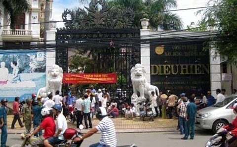. Nông dân tiếp tục bủa vây biệt thự Diệu Hiền sau 13 ngày đòi nợ. Ảnh: Quốc Huy |